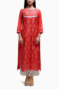 Red White Bandhani Silk Kurta