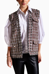 Layer this tweed jacket over high-waisted denim for a modern take on old-world sophistication