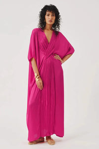 Featuring the Regal Kaftan in Pink from Aroka's Signature Collection, crafted in lustrous modal satin for a regal touch. The ruched V-neckline adds subtle definition to its flowing silhouette, striking the perfect balance between ease and elegance. Designed for versatile styling, it transitions effortlessly from festive soirées to resort escapes.