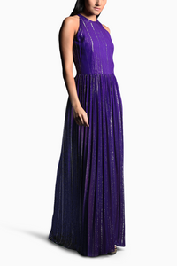 Featuring the Halter Neck Maxi Dress by Swatee Singh in a regal Purple hue. Crafted from luxurious georgette fabric, this maxi dress is a perfect blend of style and grace, offering an enchanting and elegant look.