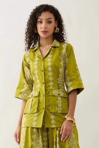 Fabric- Cotton Satin Color- Leaf, Off White Barbed Fit- Relaxed Components- 1 Product Code- SVESNOBSN-SHR-REN-BA-01