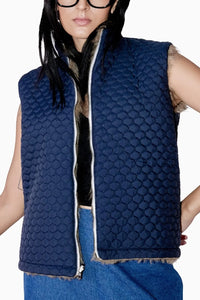 Featuring Fur and quilting sleeveless short jacket.