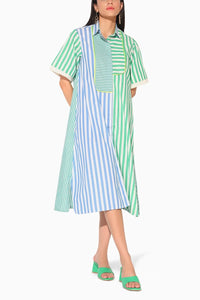 The Rhea Dress is a relaxed, comfortable shirtdress crafted with thoughtfully placed multi-stripe panels and refined detailing. Designed for effortless wear, it brings a playful twist to everyday dressing with its modern yet laid-back charm.