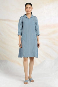 Featuring the Rhinestone Cowboy Ink Dress in 100% linen, this relaxed fit piece showcases a square cut silhouette with a collared neck, continuous placket, and half sleeves with cuffs. Rhinestone studs cascade from the shoulders, complemented by contrast flat felt seam stitch details for a bold, modern style.