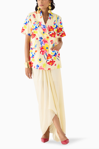 Fabric- Vegan Silk Color- Cream and Multi Components- 2 Product Code- SVERIGUSRLG017