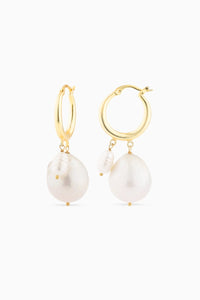 These elegant earrings feature a timeless white pearl, set on hypoallergenic brass for a comfortable and durable wear. The 18k gold-plated finish adds a luxurious touch, enhancing the classic beauty of the white pearl. With their sophisticated design and versatile color, these earrings effortlessly complement any outfit, making them perfect for both everyday wear and special occasions.