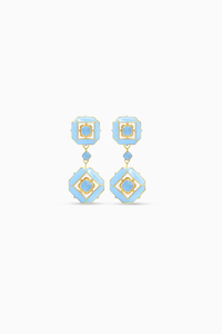 Featuring Ripple Blue Serene Dangle Earrings by Manner India from their Tranquil collection. The essence of nature and the experience of bliss are brought to life in this pastel hued collection. The colors of mystifying forests, gushing rivers, inspiring mountains and idyllic sunsets are stolen to add allure to your attire. The tranquil collection is significant of life and evolution; a quest to contemporizing the ageless art of ‘Meenakari’.