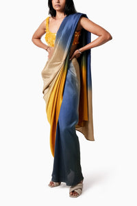 Composition- Silk Colour- Ombre Yellow Fit- This sari fits true to size, takes the shape of your body as it is a drape. The sari is high waisted, get it according to your high waist size. The blouse is cut for a slim fit. Customization - There will be an additional 10% charge Size Guide- Measurements in the size guide are ready garment measurements Components- Product code - SVE43182220204&2221605
