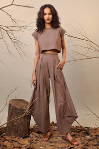 Raglan-style crop top made in handspun cotton. Team it with the cowl pants in the same color or contrast from this collection to complete the look. Can also add our scarves from this collection for a winter look.