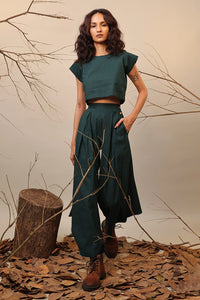 Raglan-style crop top made in handspun cotton. Team it with the cowl pants in the same color or contrast from this collection to complete the look. Can also add our scarves from this collection for a winter look.