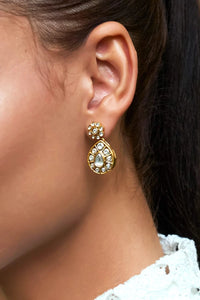The Essence-This elegant pair of earrings crafted with Iceberg stones, evokes a sense of nostalgia. These can be styled effortlessly on both Indian and western wear.