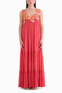 Featuring a comfort fit and a scoop neck, the Rosa Maxi Dress by House Of Exotique exudes effortless elegance. Adorned with floral lace appliqué and a keyhole button loop at the back fastening, it's crafted from crinkle chiffon and lace in a vibrant orange hue.
