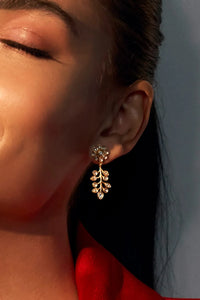 The Essence-A classic pair of delicate drops, these earrings are made of gleaming Iceberg stones, portraying a dreamy silhouette of a vine, sprinkled with fine kundan work.