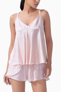 The Rose Jacquard Pure Silk Camisole Set is a luxurious sleepwear essential. Featuring a silk camisole and flowy panelled shorts with a rose-patterned jacquard design, this Set is perfect for indulging in elegance and comfort during your nighttime routine.