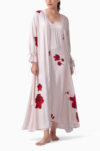 Wrap yourself in luxury with the Rose Sorbet Long Robe. Made from soft modal, it features big princess sleeves with playful ruffles and bow ties at the ends. This robe is perfect for adding an elegant, whimsical flair to your lounging routine.
