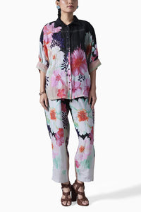 Elevate your look with this charcoal floral printed, handwoven linen kimono shirt, thoughtfully paired with coordinating pants. This ensemble effortlessly combines style and comfort, making it a versatile choice for any occasion.