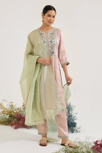 Fabric- Kurta and Pants- Tissue, Dupatta- Kota Tissue Color- Kurta and Pants- Pink, Dupatta- Mint Embroidery- Kurta and Pants- Dori Embroidery, Dupatta- Machine Embroidery Fit- Relaxed Fit Size Worn by Model- S Model Height- 5'5 Components- 3 Product Code- SVENEROSTKS25&STD25