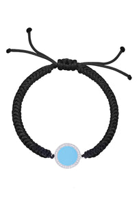 Round turquoise enamel (15 mm) and diamond bracelet with black cord in 14KT white gold are featured from our Raksha Bandhan collection to Celebrate the eternal bond of love and protection this with our exquisite Fine Jewellery Rakhi Collection. Each piece is intricately crafted with love and care, making them the perfect tokens of affection for this special occasion. Stone : Full Cut Diamonds