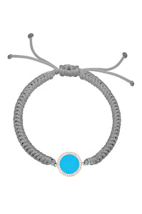 Round turquoise (14.5 mm) and diamond bracelet with grey cord in 14KT white gold are featured from our Raksha Bandhan collection to Celebrate the eternal bond of love and protection this with our exquisite Fine Jewellery Rakhi Collection. Each piece is intricately crafted with love and care, making them the perfect tokens of affection for this special occasion. Stone : Full Cut Diamonds and Turquoise