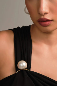 Featuring Royal Pallu White Pearl Holder by Anaash X Ekaya, this statement accessory doubles as a brooch and pallu holder. Crafted from radiant manufactured pearls in a timeless white hue, it adds regal elegance to any traditional ensemble.