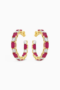 Add a touch of regal elegance to your collection with Miapia’s Ruby Enchant Hoops. These exquisite earrings showcase a harmonious blend of deep red ruby-cut stones alternating with brilliant moissanite diamonds, all set in a luxurious gold vermeil. The intricate detailing and vivid colour contrast create an eye-catching piece that embodies sophistication and glamour.
