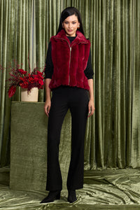 Our Ruby Bomber in crimson faux fur has zip detailing down the front to give that modern, elevated look.
