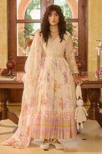 Color: Dress - Ivory, Stole - Ivory With Pink Border