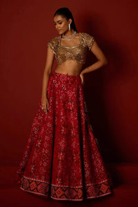 Color: Blouse- Gold, Lehenga- Ruby Red