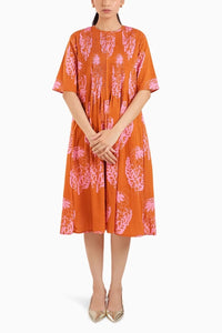 Brighten up your wardrobe with the Rust Orange Floral Elbow Sleeve Dress. This stunning dress features a bold floral design set against a warm rust-orange background, making it perfect for any season. The elbow-length sleeves provide a versatile and elegant look, while the flattering fit ensures you feel confident and comfortable all day. Ideal for a lunch date or evening gathering, this dress is a true wardrobe staple.