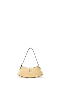 Handcrafted shoulder bag. Designed in a distinctive elongated, curved silhouette and crafted from supple Saffiano leather with silver hardware and a refined flap closure.