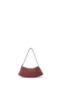 Handcrafted shoulder bag. Designed in a distinctive elongated, curved silhouette and crafted from supple smooth Nappa leather with silver hardware and a refined flap closure.