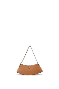 Handcrafted shoulder bag. Designed in a distinctive elongated, curved silhouette and crafted from supple pebble-grain leather with silver hardware and a refined flap closure.