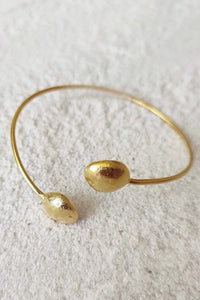 The Rye Golden Bracelet features a sleek and elegant design with a warm gold finish. Its refined style makes it a versatile accessory, perfect for adding a touch of sophistication and luxury to any outfit.