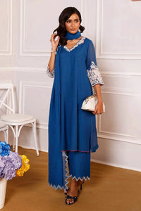 Featuring premium Cotton Chanderi with a soft, elegant drape, this ensemble showcases intricate dori work for a refined, artisanal look. The slightly flared kurta is designed with a flattering V-neckline and minimal embroidery for subtle elegance, while 3/4th sleeves are richly adorned with heavy embroidery for added charm. Paired with straight pants and a dupatta, both finished with stylish zig-zag embroidered detailing, this look blends grace with contemporary flair.