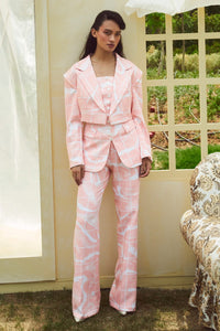 Make a bold statement with the Sadie Pink Co-ord Set. This trendy ensemble features a stylish crop blazer paired with a chic tube top and tailored pants, all crafted from soft crepe for a comfortable fit.