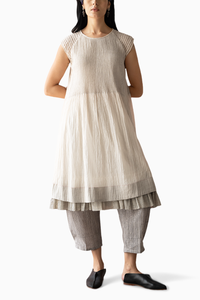 Dress-Handwoven Chanderi Layered Dress With Very Fine Pintucks And A Hand Block Printed Frill At The Bottom Inner Hem.