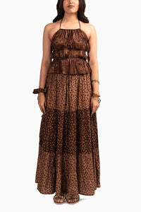 Make a statement with the Safari backless top and 3-layered skirt, both featuring our signature in-house print. The reversible gathered top includes an elasticated back for a flexible fit, while the tiered skirt offers movement and comfort with its elasticated waist, perfect for warm, effortless styling.