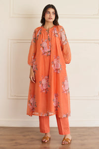 Featuring the Saffron Sunset Chanderi Co-ord Set- a handwoven creation flowing with its own rhythm. Relaxed yet refined, adorned with hand block prints that echo the art of skilled hands. Paired with soft cotton trousers, this ensemble is more than clothing- it’s a canvas of comfort and soul.