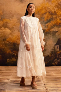 Adorned with intricate appliqumotifs, the Saku YokeDress is a testament to precision craftsmanship. Theyoke blooms into a subtly flared skirt, exuding gracewith every step. Its enduring design and versatileappeal make it perfect for everything from casualgatherings to formal events.