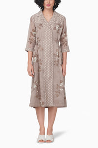 Sakura Printed Beige Dress
