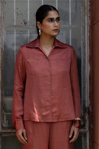 Featuring Salmon Pink Comfort Shirt by Somya Goyal's Comfort Zone Collection, this shirt includes chest pockets, a lined body for added comfort, and a statement collar, combining style and ease for everyday wear.