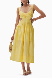 The Sanci Yellow Chanderi Dress features a bright, vibrant yellow hue in luxurious chanderi fabric. With its elegant design and light, airy texture, this dress offers a perfect blend of tradition and modern style, ideal for festive or formal occasions.