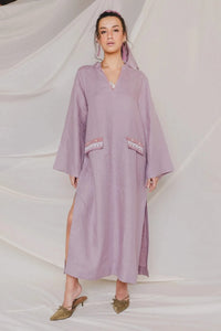 Minimal yet mindful: Sandra Embroidered Kaftan! A timeless everyday edit.100% goodness of linen. Deep contrast neckline adds quiet sophistication. A clean silhouette with a quiet elegance perfect for everyday ease with a hint of tradition.
