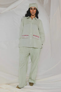 Composition: 100% Linen Color: Mint Green Fit: Relaxed Length: 28 inch Model Height: 5'9 Size Worn by Model: Small Components: 1 Product Code: SVENIRVLSTVOL404