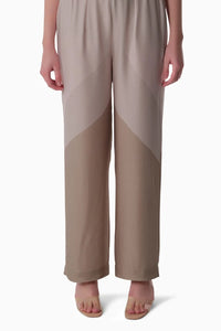Sandstone Dunes exudes sophistication with its flowing beige and taupe trousers, crafted from premium, silky fabrics. This elegant piece features a striking geometric pattern, combining timeless grace with contemporary flair. Perfect for a chic, poised ensemble.