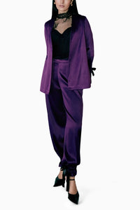 Featuring Open blazer with ribbon cuffs and black lace corset paired with ribbon tulip pants