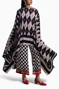 Fabric- Satin Nyka Colour- Black, White, Red Fit- Loose Fit Components- 2 Product code- SVEMOHPAW2343A