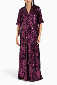 Featuring a sequence straight kaftan with side slits and pockets highlighted by flaps and band collar.