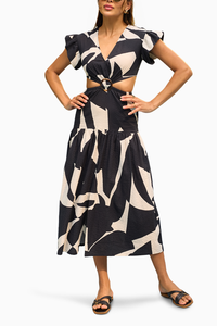 Introducing our Santorini Maxi Dress from the Summer collection to elevate your wardrobe. This dress comes with ruffled sleeves, an open waist and a buckle detail. Complete your look with stud earrings and your favourite pair of slides!