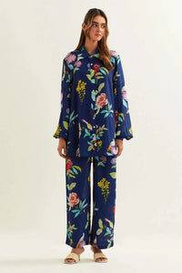 Featuring Sapphire Co-ord Set by Label Earthen from Loom Florist Collection. The floral co-ord shirt and pant celebrate everyday India with vibrant prints and effortless style, perfect for adding a touch of cultural charm to your daily wardrobe.